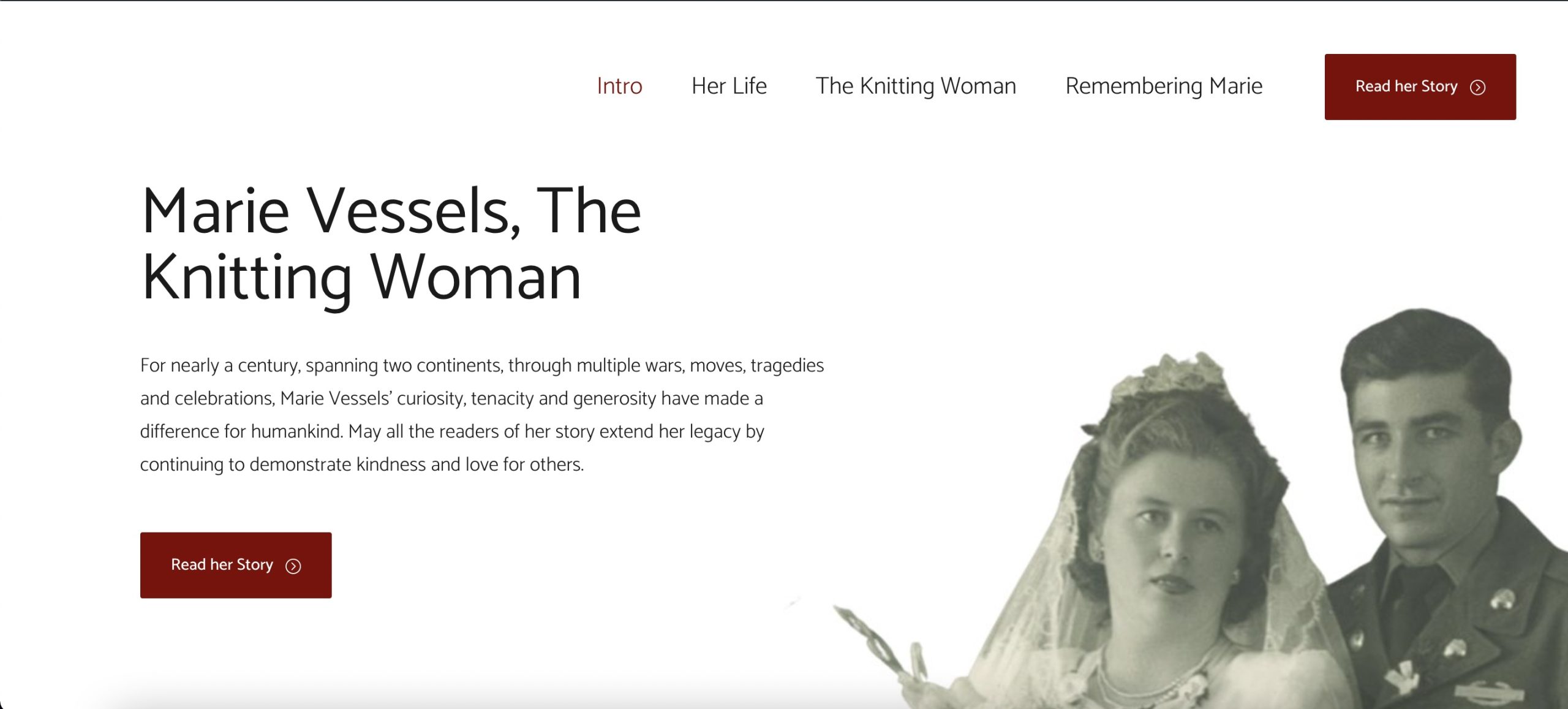 For late Marie Vessels, The Knitting Woman, I created a website to tell her story.
